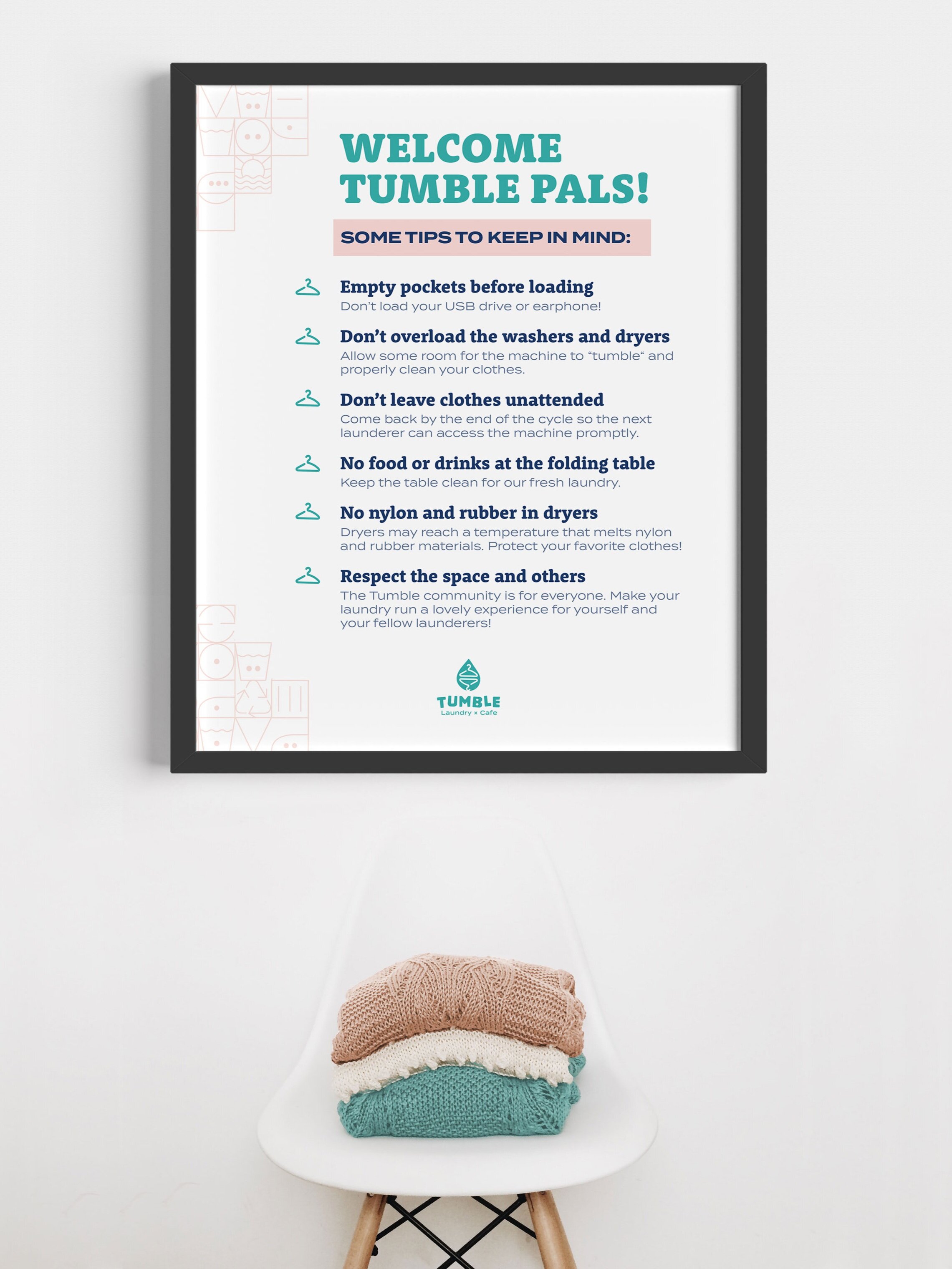 Welcome to Tumble, where the morning brew meets an eco-focused laundromat! The mundane laundry routine is transformed to an engaging community experience via a bright, welcoming and relaxing space. The visual theme inspired by laundry symbols and environmental awareness facilitates a friendly, cheerful vibe.